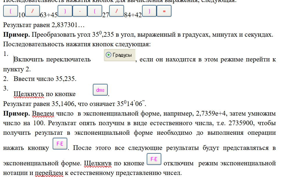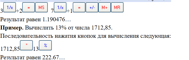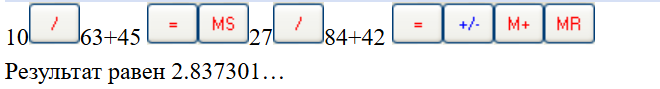 Пример. Вычислить значение выражения, не используя кнопки записи промежуточных результатов в память Калькулятора.