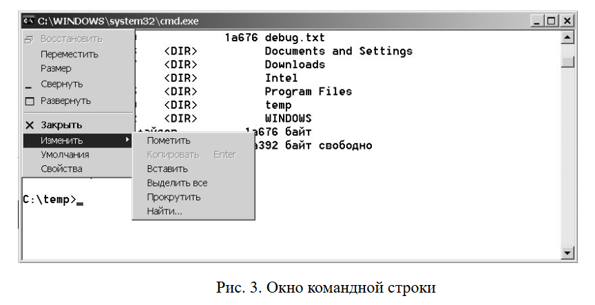 Задание 1. Рассмотрите особенности применения режима командной строки под управлением операционной системы Windows.