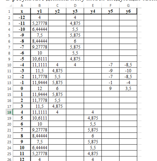 6. Последовательно для каждой функции необходимо рассчитать значения y.