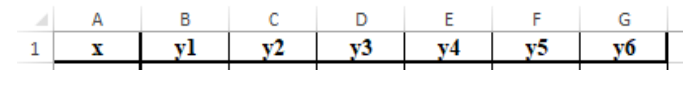 Заполняем ячейки С2, D2, E2, F2, G2 соответственно y2, y3, y4, y5, y6