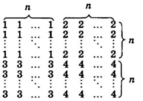 Построить квадратную матрицу порядка 2n: