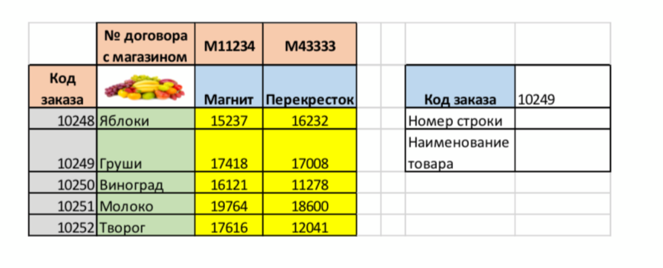 В) Найти наинменование фрукта по заданному номеру строки. (ИНДЕКС).