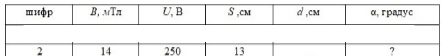 В области пространства, представляющей собой плоскопараллельный слой толщины d, создано однородное магнитное поле с индукцией В. Линии магнитной индукции направлены вертикально вверх и параллельны границам слоя. Протон, ускоренный разностью потенциалов U, влетает в область магнитного поля перпендикулярно границам слоя. Пройдя внутри слоя путь S, частица покидает магнитное поле, отклонившись от первоначального направления на угол а. Определить неизвестную величину.