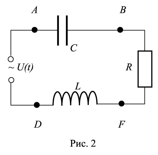 = 50 Гц. Найти амплитуду напряжения и сдвиг фаз между током и напряжением на заданном участке цепи (AF или BD).