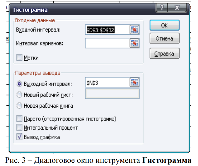7. Заполните диалоговое окно Гистограмма в соответствии с рисунком 3, где:
