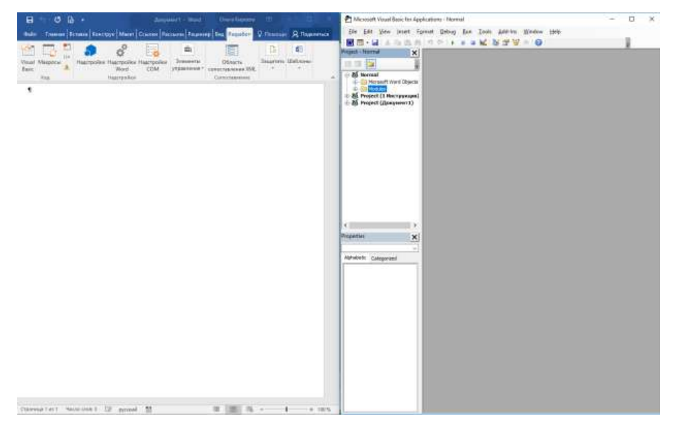 ВНИМАНИЕ!!! Расположите окно с документом и окно редактора кода так, чтобы они не перекрывали друг друга: