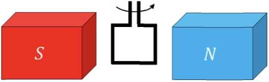 На рисунке изображена рамка с током, которая вращается в магнитном поле постоянного магнита. Определите направление тока в рамке. Свой ответ обоснуйте.