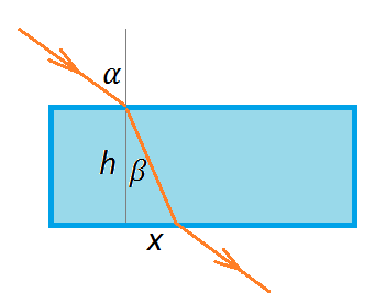 Угол падения светового луча на стеклянную плоскопараллельную пластинку толщиной 3 см равен 60°. На сколько сместился луч в пластинке, если показатель преломления стекла равен 1,6?