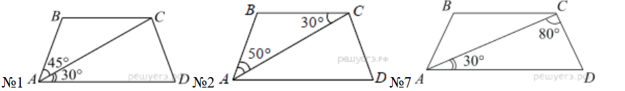 2. Найдите угол АDС равнобедренной трапеции ABCD, если диагональ АС образует с основанием ВС и боковой стороной АВ углы, равные 30° и 50° соответственно.