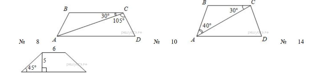 10. Найдите угол АDС равнобедренной трапеции ABCD, если диагональ АС образует с основанием ВС и боковой стороной АВ углы, равные 30° и 40° соответственно.