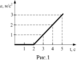 1. К покоящемуся на шероховатой горизонтальной поверхности телу приложена нарастающая с течением времени горизонтальная сила тяги F=b.t, где b – постоянная величина. На рисунке 1 представлен график зависимости ускорения тела от времени действия силы. Определите коэффициент трения скольжения.