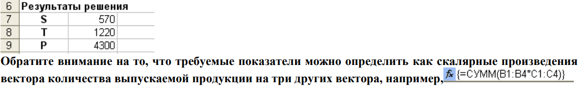 Требуется определить следующие ежесуточные показатели: расход сырья S, затраты рабочего времени T и стоимость Р выпускаемой продукции предприятия.