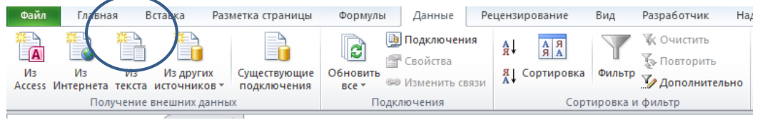 1. Импортируйте данные из файла Озера.txt (Данные-Получение внешних данных) на отдельный лист книги и распределите данные по столбцам, выбрав необходимые параметры при импорте данных.
