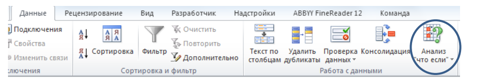 • Используя функцию Подбор параметра