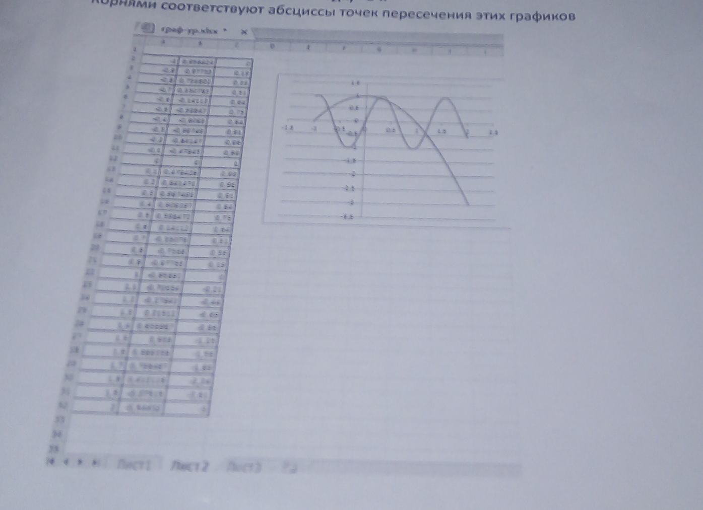 В диапазоне А3:А32 введём значения переменной х [-1, -0,9 ....] - заполнитть с помощью маркера заполнителя.