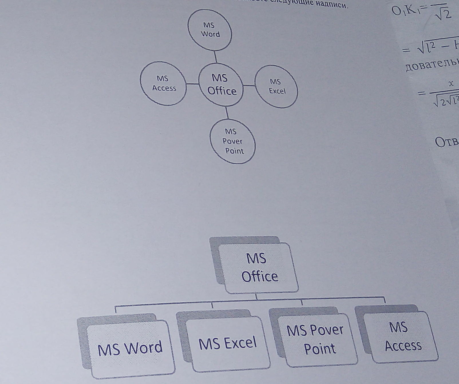 1. С помощью стандартных фигур на вкладке Вставка создайте рисунок 1, внутрь блок-схему добавьте соответствующие надписи. Измените формат надписи, установив для цвета заливки и цвета линии параметр Нет цвета.