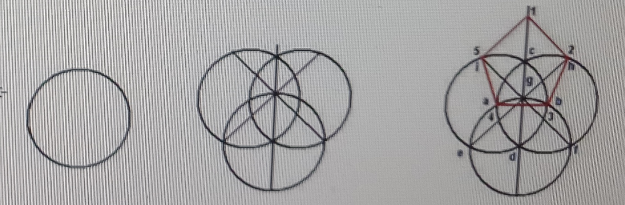 - Копируем окружность три раза так, чтобы при пересечении образаловалась сторона пятиугольника.