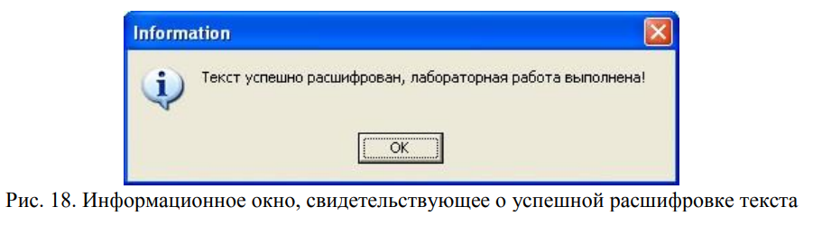 Когда же все буквы текста расшифрованы, на экран выводится информационное окно (рис. 18):