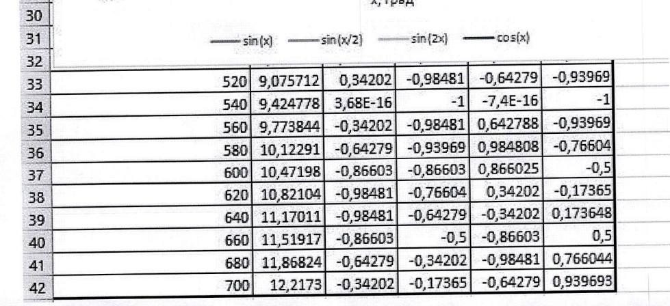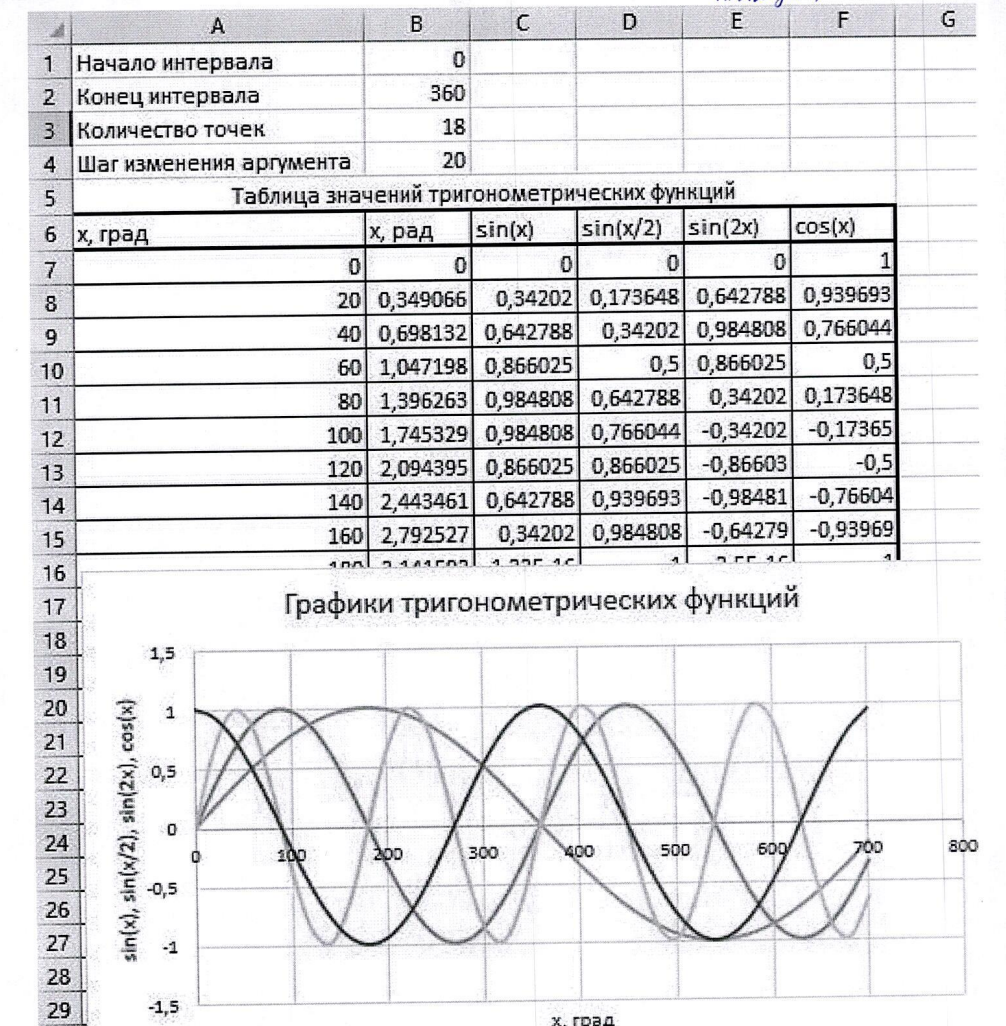 Задание: построить таблицу значений и графики, тригонометрических функций y=sin(x); y=sin(2x); y=cos(x).