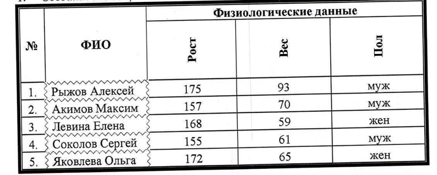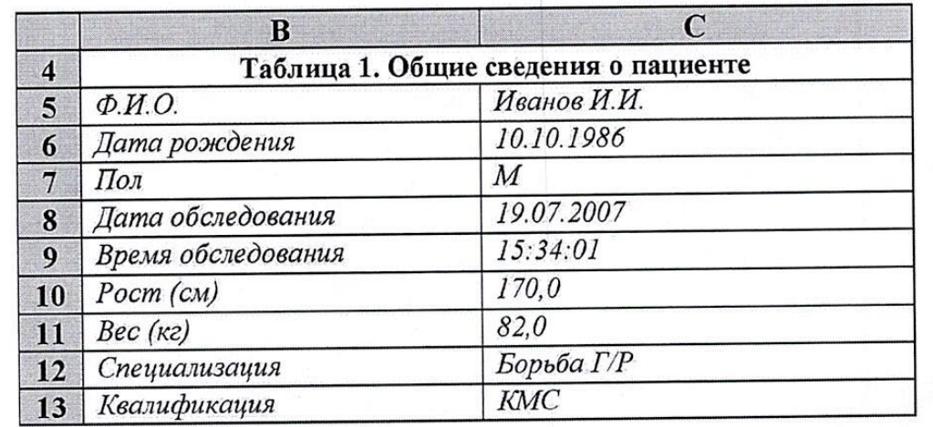 1. Построить таблицу 1 с исходными данными "Общие сведения о пациенте". Таблица содержит общие сведения о пациенте. Соблюдайте нумерацию ячеек.