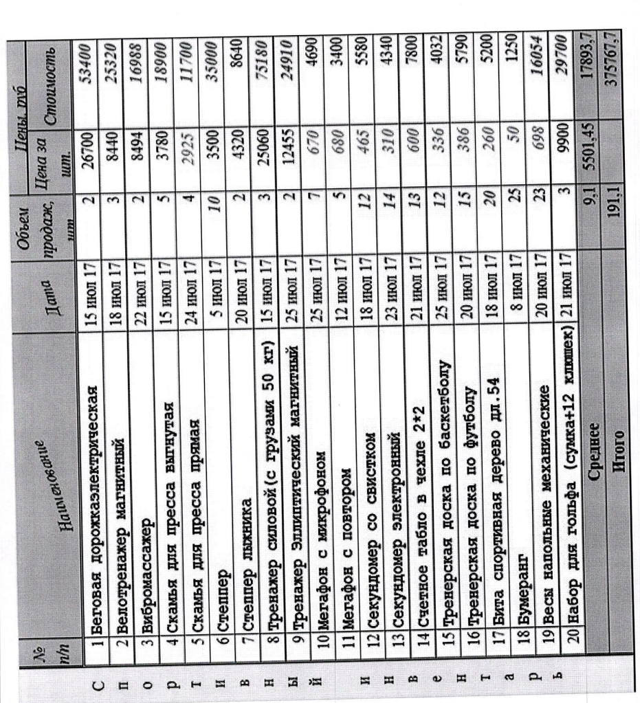 3. Рассчитать средние показатели "Среднее": объём продаж, цену за единицу товара, стоимость.