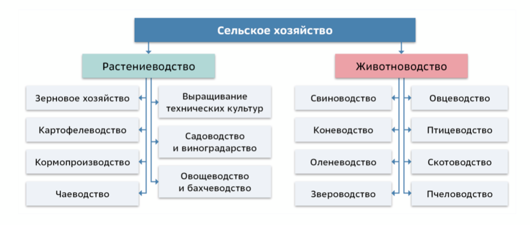 В. Сельское хозяйство - основа (ядро) АПК, которое включает растениеводство, животноводство, фермерские хозяйства, личные подсобные хозяйства и так далее;