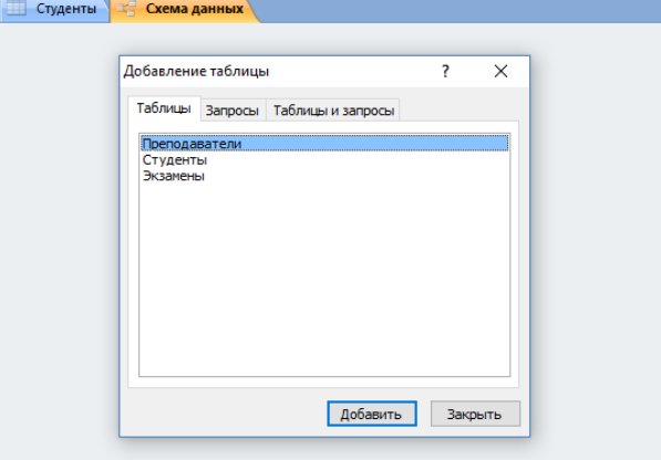 3. Теперь в окне должны отобразиться миниатюры двух таблиц со связью (один к одному).