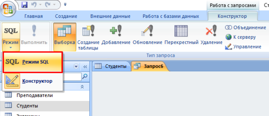 На создание сущности Кроме добавления таблицы с помощью встроенного конструктора, иногда может потребоваться выполнение этой операции с помощью SQL запроса. В большинстве случаев это нужно во время выполнения лабораторных или курсовых работ в рамках университетского курса, ведь в реальной жизни необходимости в этом нет. Если вы, конечно, не занимаетесь профессиональной разработкой приложений. Итак, для создания запроса нужно: