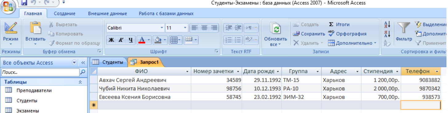 В этом случае в ход вступает принцип «прочесть». Например, нам нужно найти всех студентов, которые учатся в Харькове. Для этого нужно: