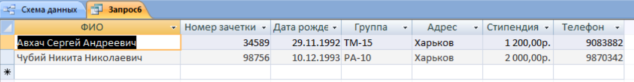 А что делать, если нас интересуют студенты из Харькова, стипендии у которых больше 1000? Тогда наш запрос будет выглядеть следующим образом: