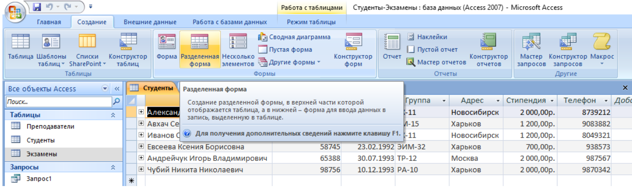 Совет! Рекомендуется использовать «Разделенную форму» – кроме самого шаблона, в нижней части будет отображаться миниатюра таблицы, которая сделает процесс редактирования еще более наглядным.