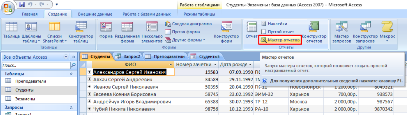 Все базовые функции MS Access мы уже рассмотрели. Остался последний важный компонент – формирование отчета.