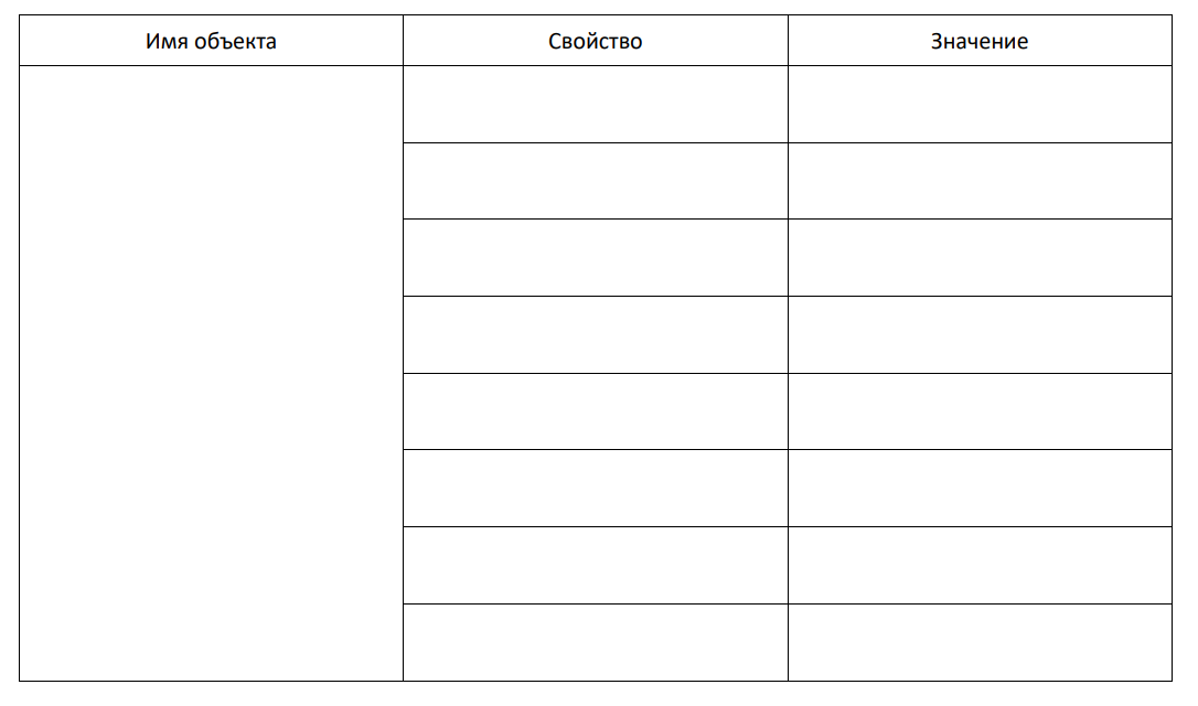 4. Дан текст: В данном тексте выделите объект (с точки зрения информационного моделирования) и заполните таблицу, указав свойства объекта и их значения.