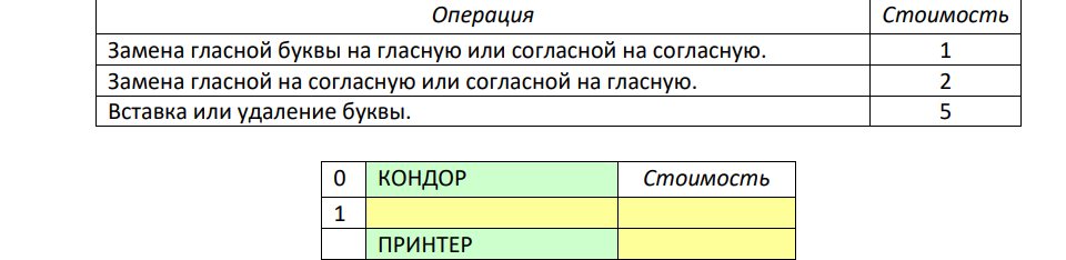 6. Преобразуйте слово КОНДОР в слово ПРИНТЕР. Используя следующую таблицу для оценки «стоимости»