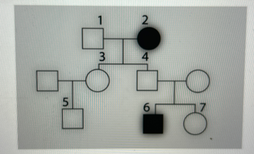 По изображённой на рисунке родословной установите характер проявления признака, обозначенного чёрным цветом (доминантный или рецессивный, сцеплен или не сцеплен с полом). Опрдеделите генотипы родителей и потомков, обозначенных цифрами 1, 2, 3, 4.