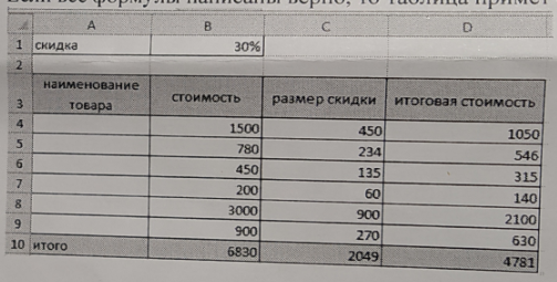 Если все формулы написаны верно, то таблица примет следующий вид: