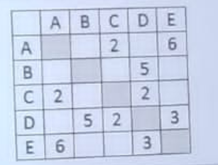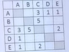 5. На рисунке приведена весовая матрица графаю Определие вес ребра, соединяющего вершины B и D.