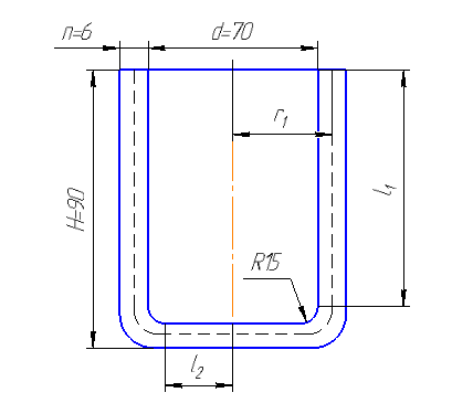 При выполнении этого задания необходимо провести расчеты для изготовления изделия типа «колпачок» из плоской заготовки методом вытяжки без утонения стенок, необходимые формулы и пояснения даны далее по тексту.
