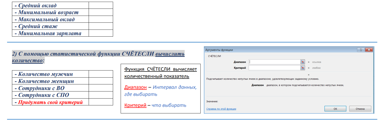 1) С помощью статистических функций СРЕДНЕЕ, МАКСИМУМ, МИНИМУМ сделать вычисления: