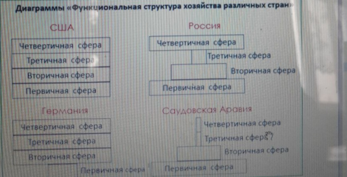 4. Сравните выбранные страны по особенностям функциональной структуры их экономики. Используйте для выполнения задания диаграмму "Функциональная структура хозяйства различных стран".