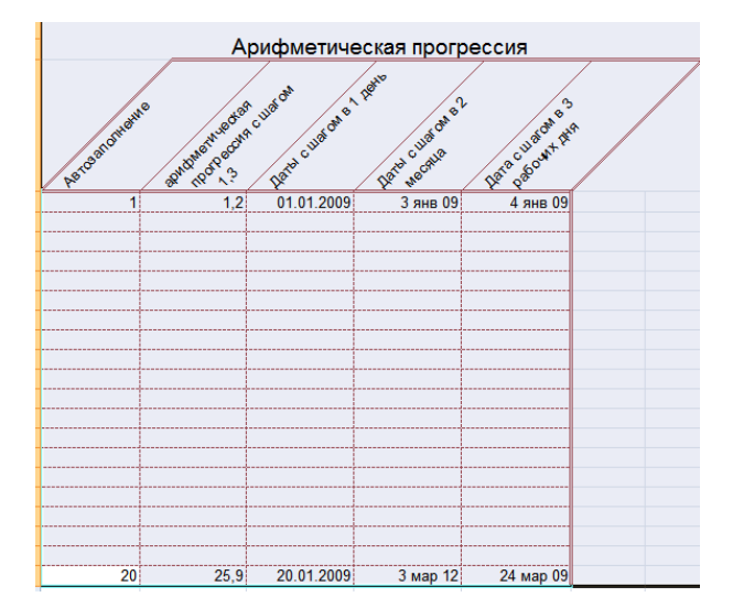 На Листе Прогрессия создать таблицу по представленному образцу: