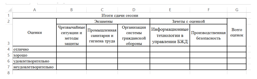 На листе разработать таблицу «Итоги сдачи сессии» по образцу, представленному ниже.