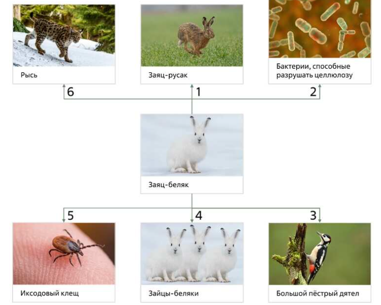 1. Запишите названия обозначенных на схеме цифрами типов взаимоотношений организмов, объясните характер взаимодействий.
