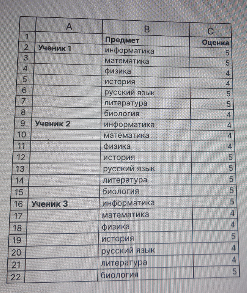 15. Какое значение будет отражено в ячейке С23, если в неё записать формулу =СУММЕСЛИ (В2:В22;"информатика";С2:С22)?