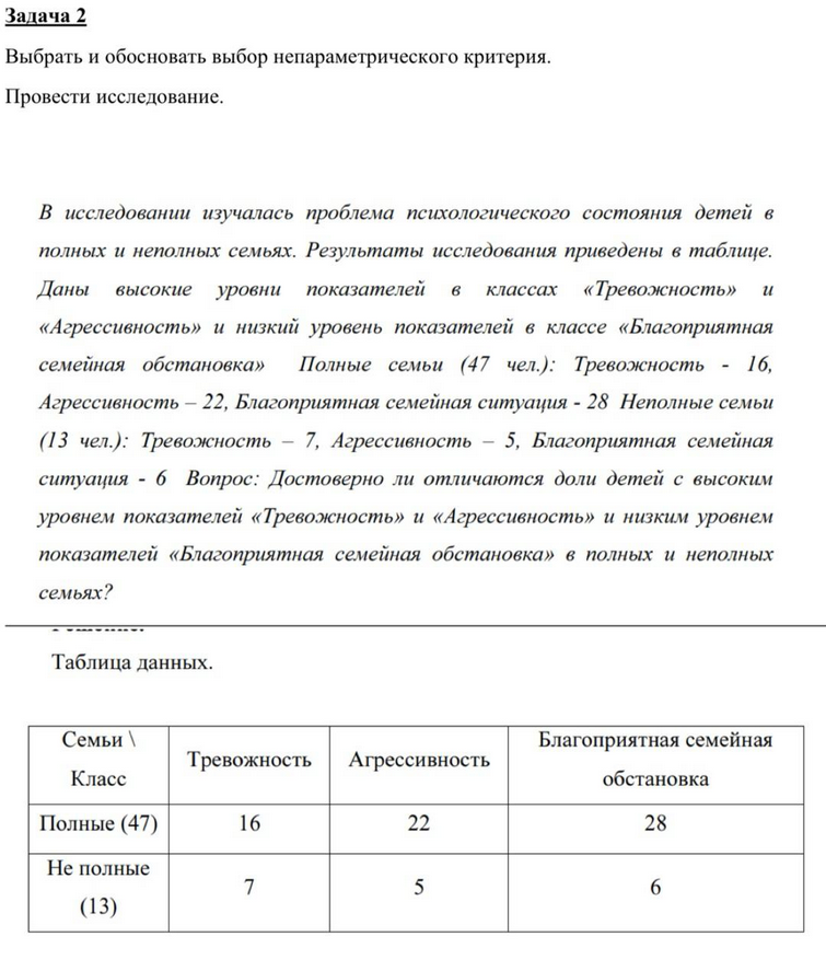 3. Выбрать и обосновать выбор непараметрического критерия.