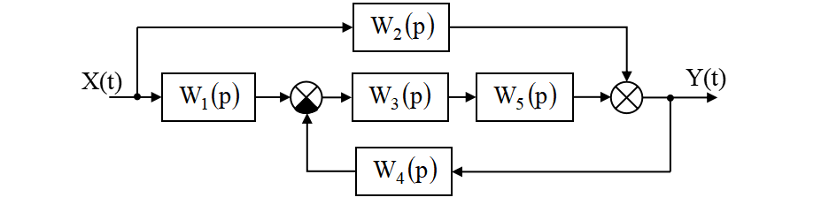 Произвести преобразование исходной структурной схемы линейной системы автоматического регулирования и записать передаточную функцию разомкнутой и замкнутой системы.